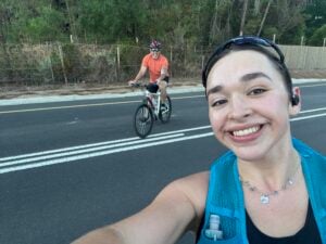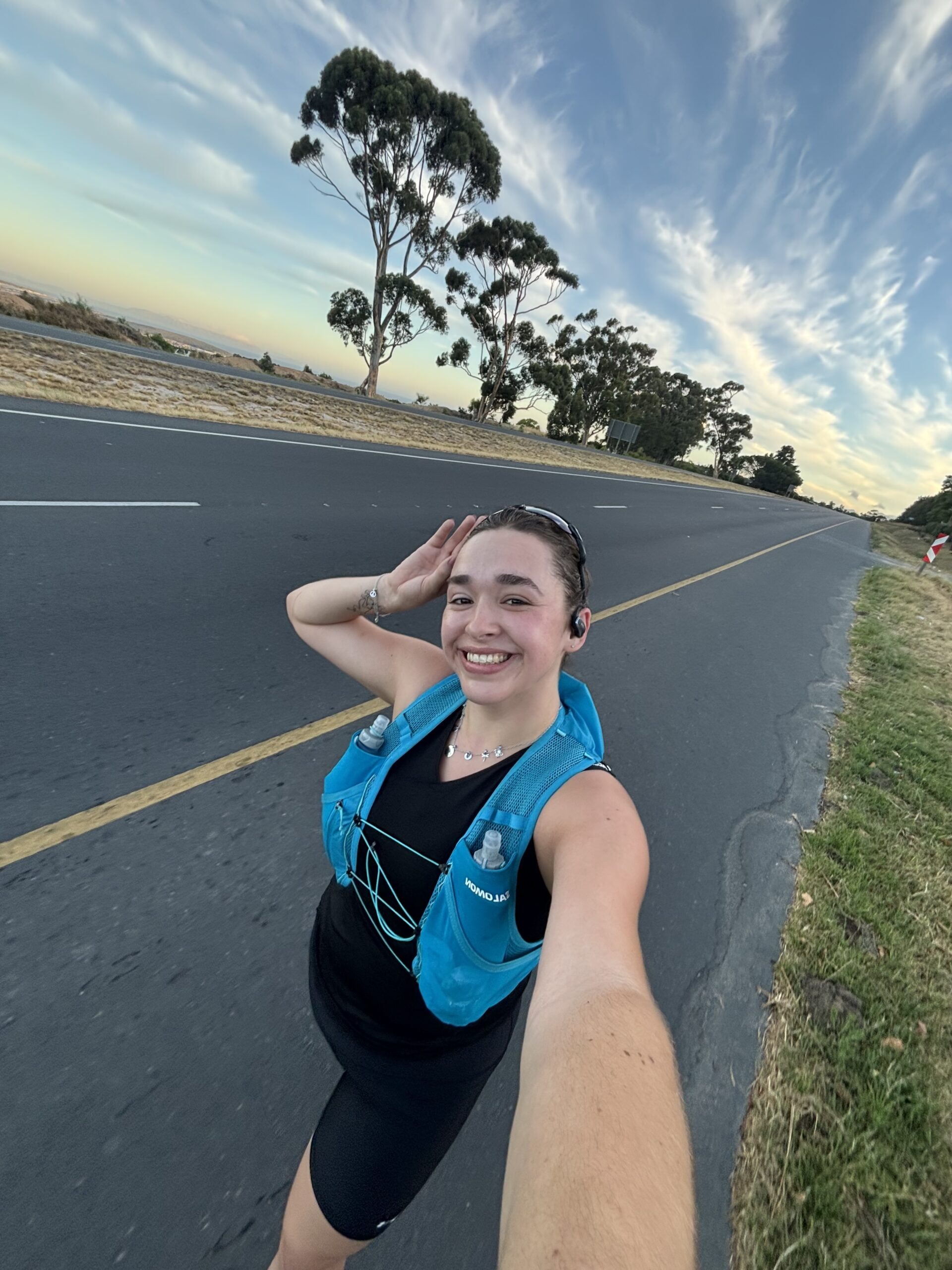 On long training days, Raine’s dad often cycles alongside her in locations including Stellenbosch, surrounded by beautiful landscapes.